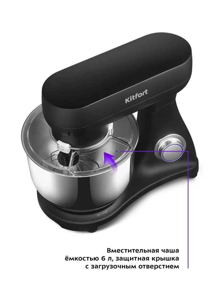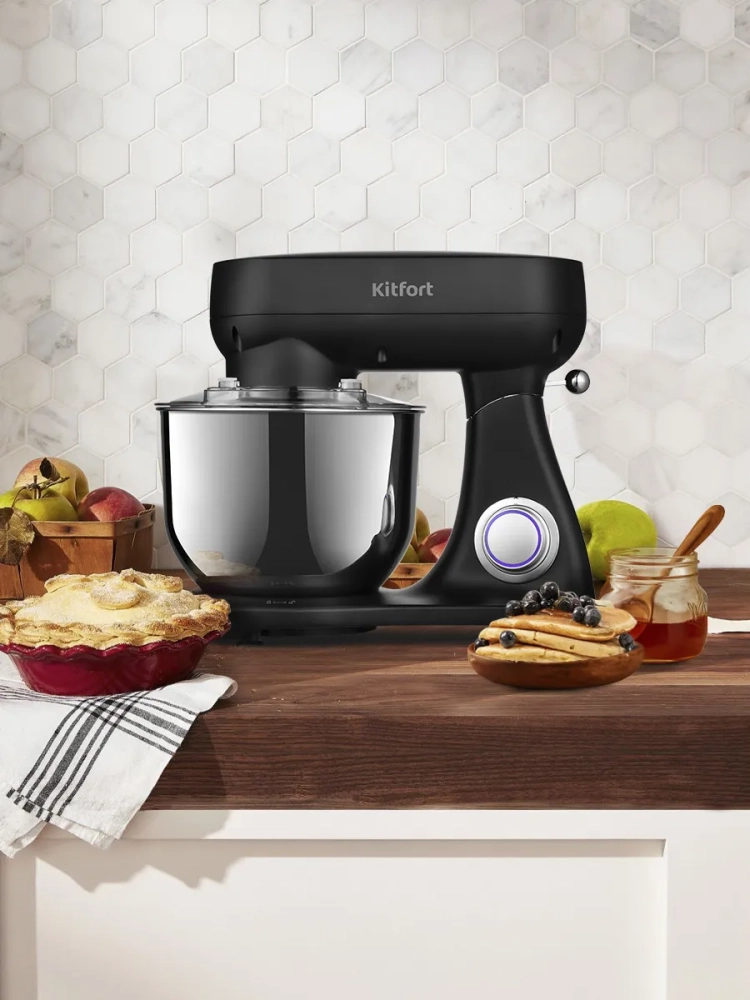 Цельнометаллический планетарный миксер Kitfort КТ-3076 поможет вам смешать ингредиенты для любого блюда, взбить яичный белок или сливки, приготовить картофельное пюре, мусс, крем, соус, замесить жидкое тесто для блинов или крутое для пельменей и пирогов. Миксер работает в автоматическом режиме. Вам достаточно только положить ингредиенты, установить подходящую насадку и включить прибор. Миксер позволяет выбрать нужную скорость работы для смешивания ингредиентов, а также установить импульсный режим. Миксер оснащен большой чашей из нержавеющей стали емкостью 6 литров. Чаша фиксируется на корпусе миксера и укомплектована защитной крышкой с отверстием. Крышка предотвращает разбрызгивание ингредиентов при замешивании. Добавлять ингредиенты во время работы можно через отверстие в крышке, не выключая миксер и не откидывая моторный блок. В комплекте идут насадки для взбивания, смешивания и замеса крутого теста.Прибор автоматически выключается при откидывании моторного блока. Если при этом регулятором скорости была выбрана одна из скоростей, то при возвращении моторного блока в исходное положение миксер не включится автоматически — нужно будет выставить скорость заново. В откинутом и опущенном положениях моторный блок фиксируется, так что перевести его из одного положения в другое возможно, только опустив рычаг фиксации моторного блока. Автоматического выключения у этого миксера нет - устройство будет работать до тех пор, пока вы не выключите его вручную или пока мотор не перегреется. После перегрева мотора термостат, расположенный на нем, разомкнет электрическую цепь. Прибору надо будет дать остыть до комнатной температуры, а после выключить и снова включить. Напряжение: ~220–240 В, 50/60 Гц - Мощность: 1800 Вт - Класс защиты от поражения электрическим током: I - Емкость чаши: 6 л - Материал чаши: нержавеющая сталь - Количество скоростей: 6 + импульсный режим - Уровень шума: ≤78 дБ - Длина шнура: 1 м