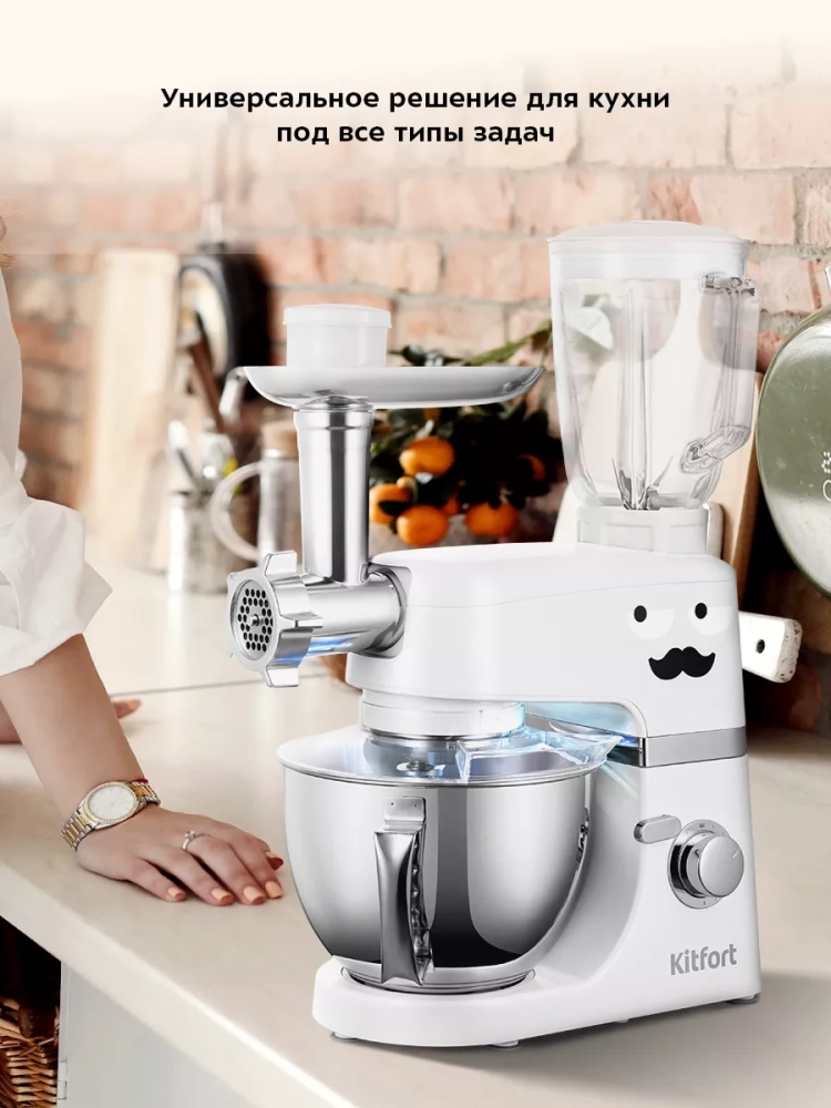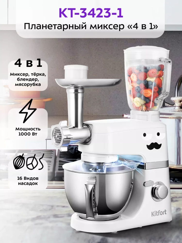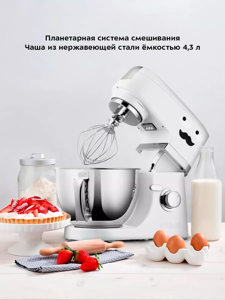 Многофункциональный цельнометаллический планетарный миксер Kitfort КТ-3423 поможет вам смешать ингредиенты, взбить яичный белок или сливки, приготовить картофельное пюре, соус, крем, мусс, замесить жидкое тесто для блинов и крутое для пельменей и пирогов.