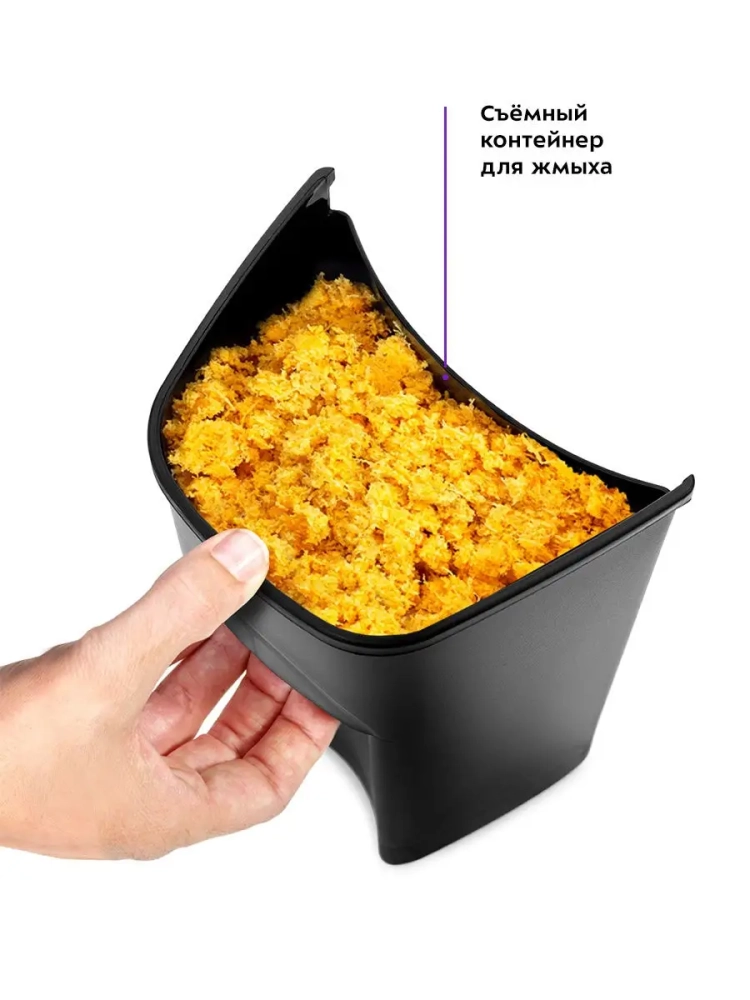 В контейнере для сока предусмотрен съемный декантер для отделения пены от сока.