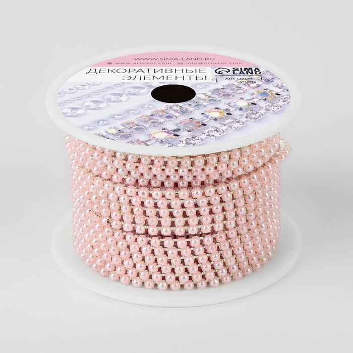 Цепь с жемчугом, металл, пластик, 2 мм, SS6, 9 ± 1 м, цвет розовый