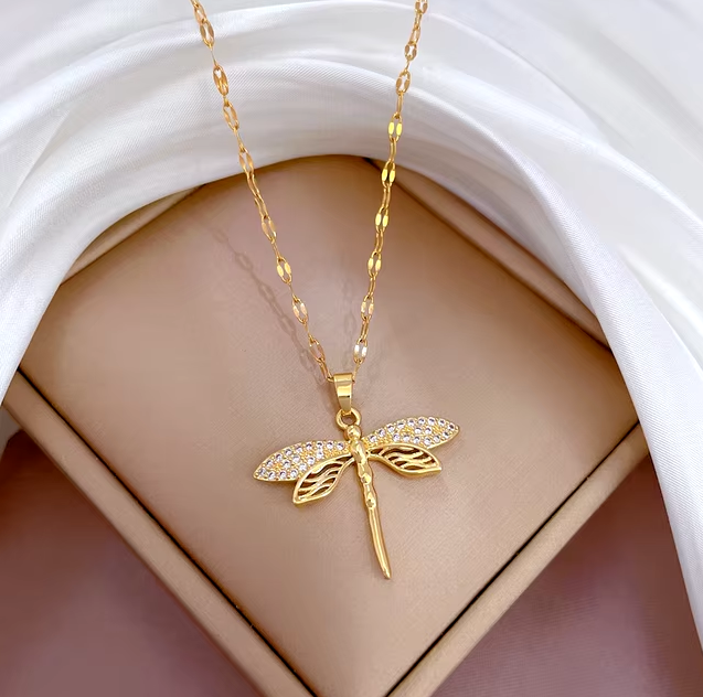 Цепочка DIEYURO из нержавеющей стали 316L с подвеской в виде стрекозы для женщин