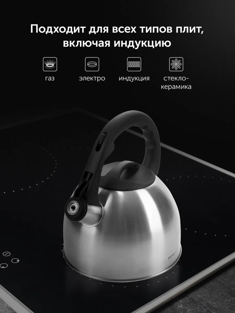 Чайник для плиты со свистком 2,2 л. для индукции