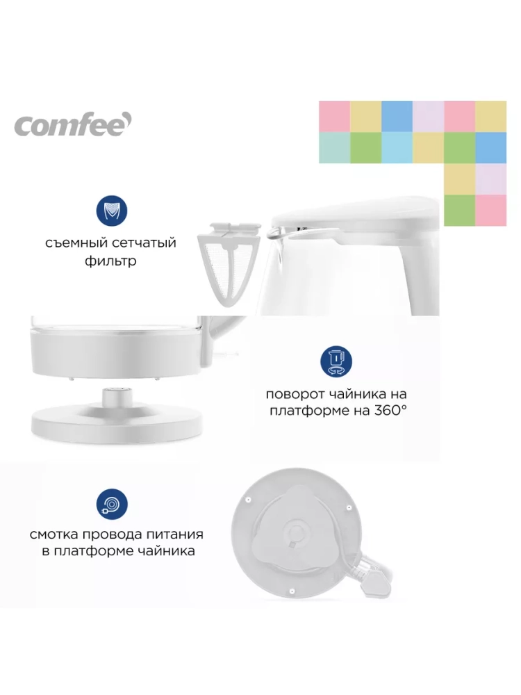 Электрический чайник Comfee CF-KT7001 - это современное и функциональное устройство для быстрого и удобного приготовления горячих напитков.