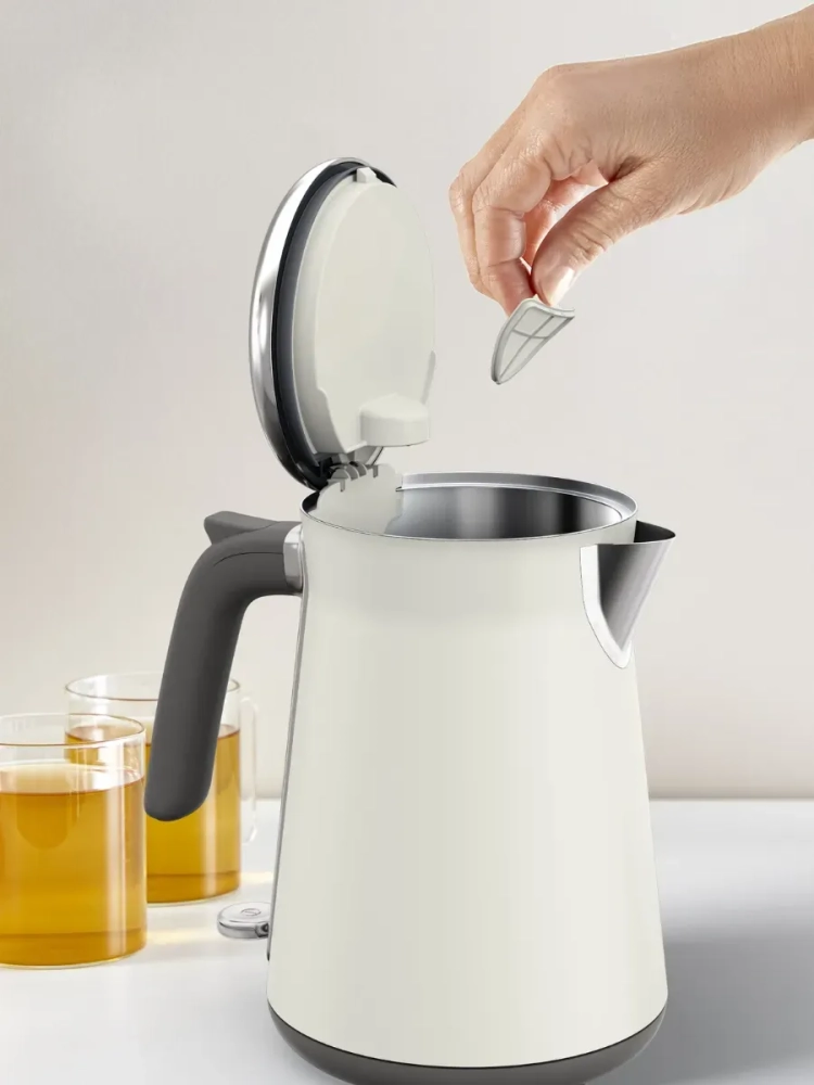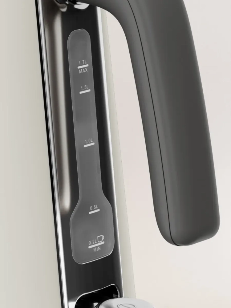 Чайник выполнен в элегантном корпусе из премиальной нержавеющей стали с хромированными деталями и эргономичной крышкой. Крышка чайника широко открывается при нажатии на кнопку - для очистки и наполнения прибора водой без лишних усилий. Приготовьте точное количество горячих напитков от 1 до 7 чашек с помощью прозрачного окошка с индикатором уровня воды. Автоотключение с индикатором. Чайник автоматически выключается после кипячения или если в нем нет воды — для более безопасного и комфортного использования.