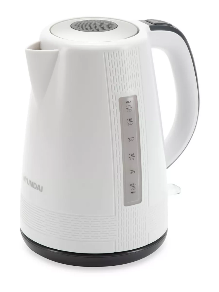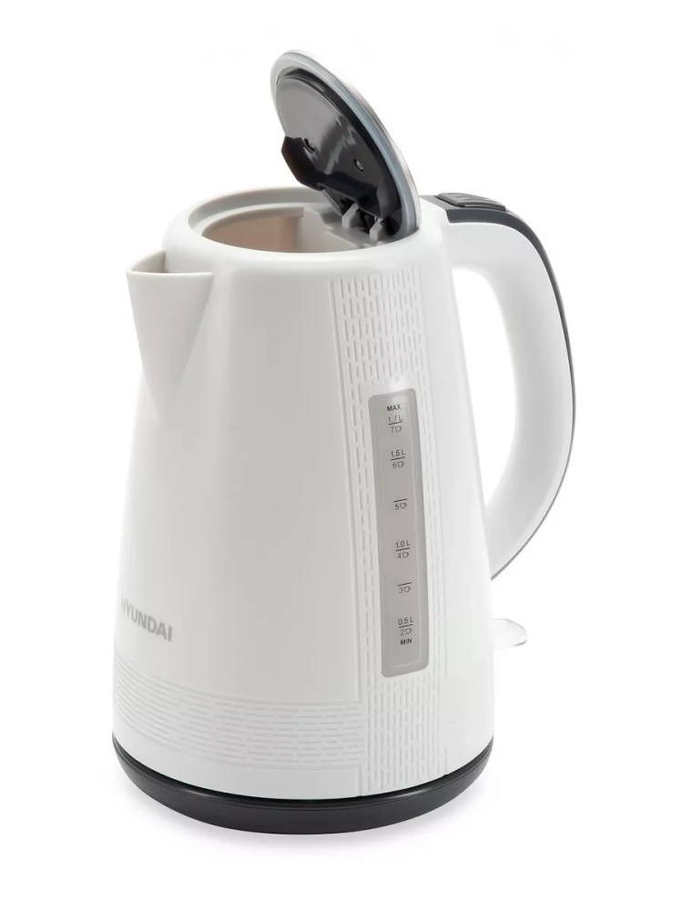 Чайник электрический Hyundai HYK-P3025 белый/серый, объём 1.7л, мощность 2200Вт, материал корпуса: пластик.Британский контроллер VnQ от Strix, с дополнительной гарантией 6 лет.