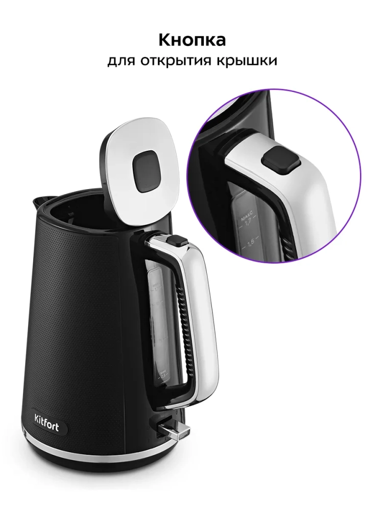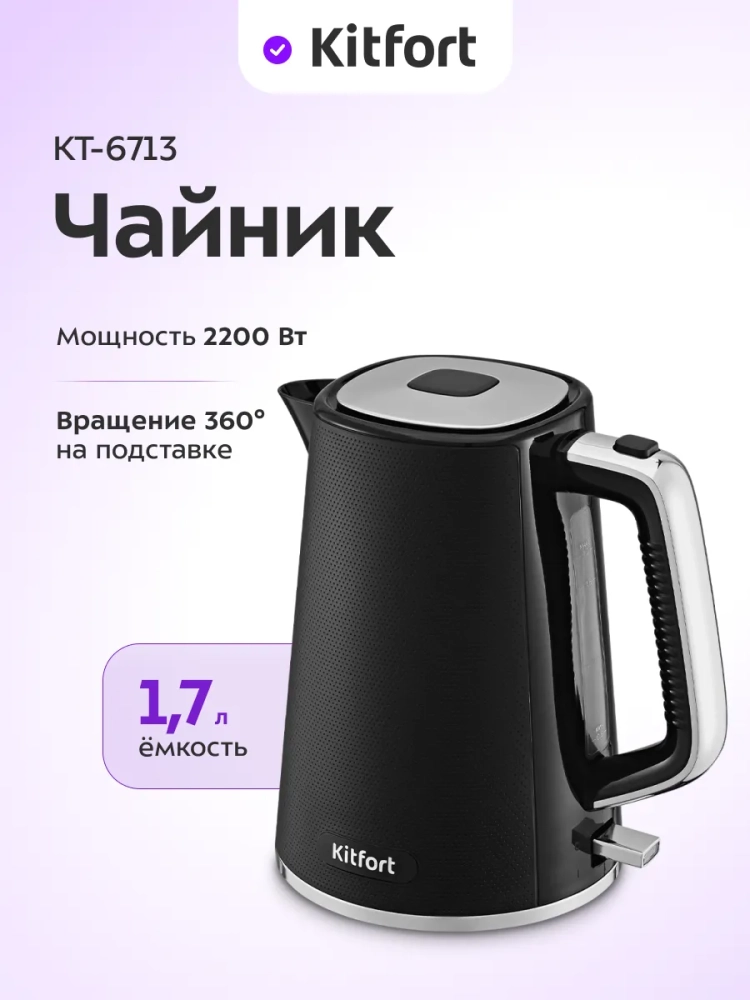 Электрический чайник Kitfort КТ-6713 предназначен для кипячения воды дома, в офисе, на даче. Ручка чайника не нагревается и удобно лежит в руке.