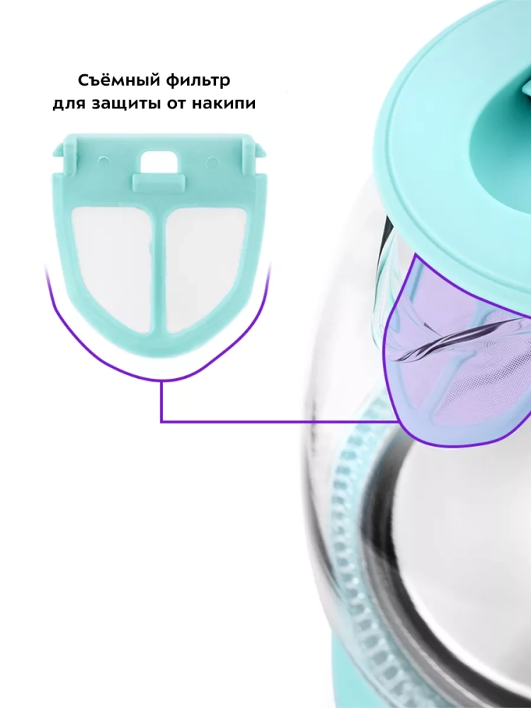 Чайник Китфорт КТ-653 автоматически отключается при закипании и при снятии с подставки, имеет защиту от перегрева и от включения без воды.