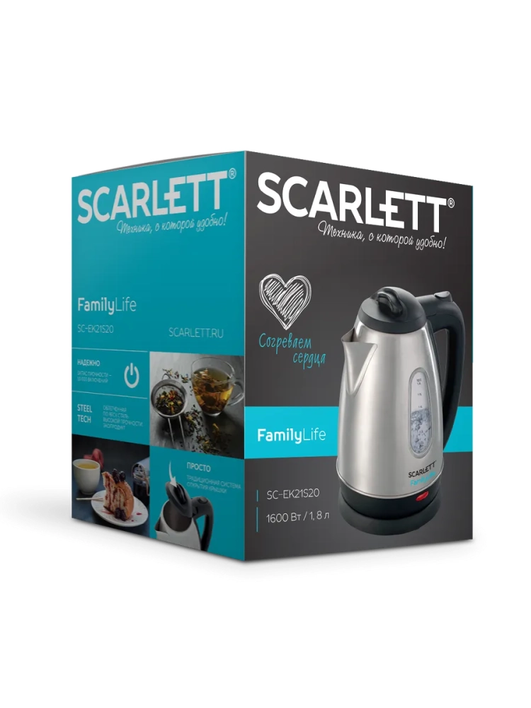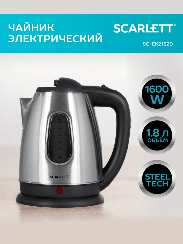 Электрический чайник SC-EK21S20 объёмом 1.8 л. Большое прозрачное окно на корпусе упрощает контроль уровня воды. Благодаря хорошей эргономике ручки, чайник удобно держать в руке. Чайник SC-EK21S20 с закрытым нагревательным элементом оснащён системой многоуровневой безопасности SAFE WORK – автоотключение при закипании, защита от включения без воды. Удобное расположение кнопки включения способствует комфортной эксплуатации.