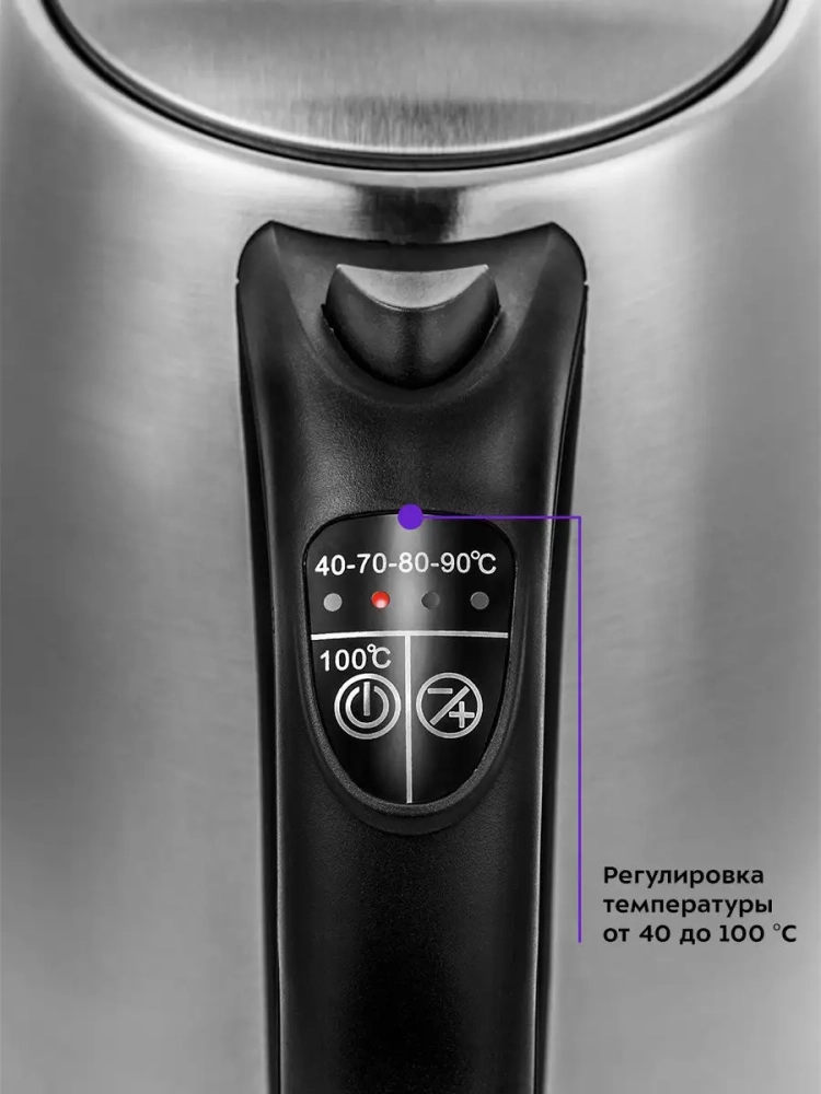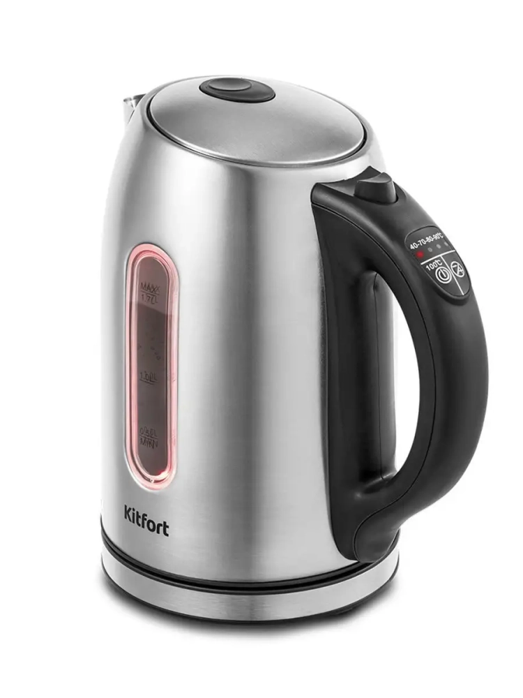 Электрический чайник Kitfort КТ-6106 предназначен для нагрева и кипячения воды. Чайник оснащен терморегулятором и может не только вскипятить воду, но и нагреть ее до температуры от 60 до 90 °С, что очень удобно при заваривании различных сортов чая, приготовлении кофе и подогрева детского питания. Чайник также оснащен функцией поддержания температуры. Температура воды контролируется термодатчиком, встроенным в нижнюю часть чайника.