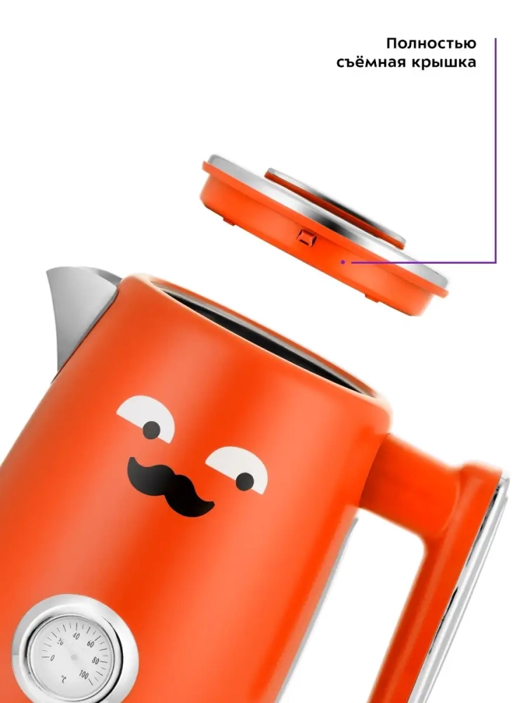 На корпусе чайника установлен термометр, который показывает температуру воды в чайнике. Это удобно, если вы готовите напитки, для которых требуется определенная температура воды, например, зеленый чай, белый чай, кофе и т. д. Во время кипячения рекомендуется держать крышку плотно закрытой, иначе данный механизм может отработать неправильно.
