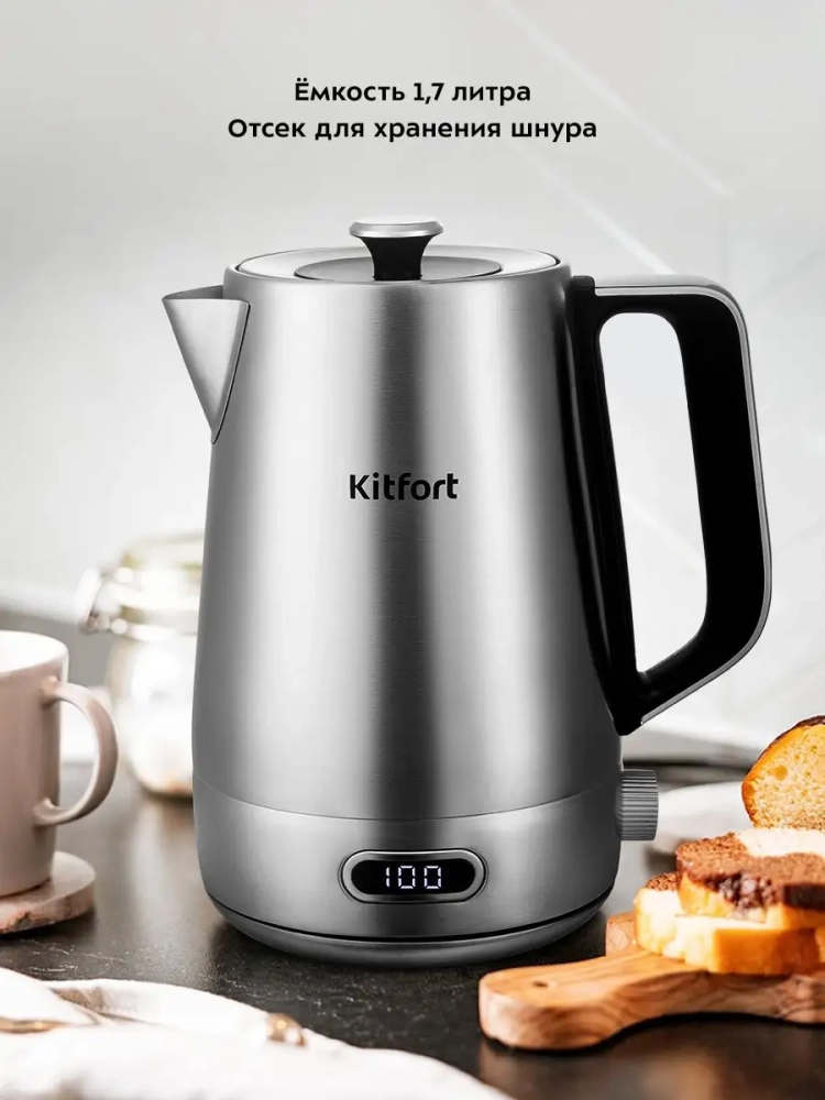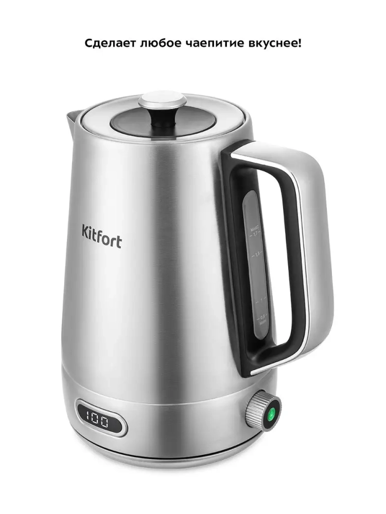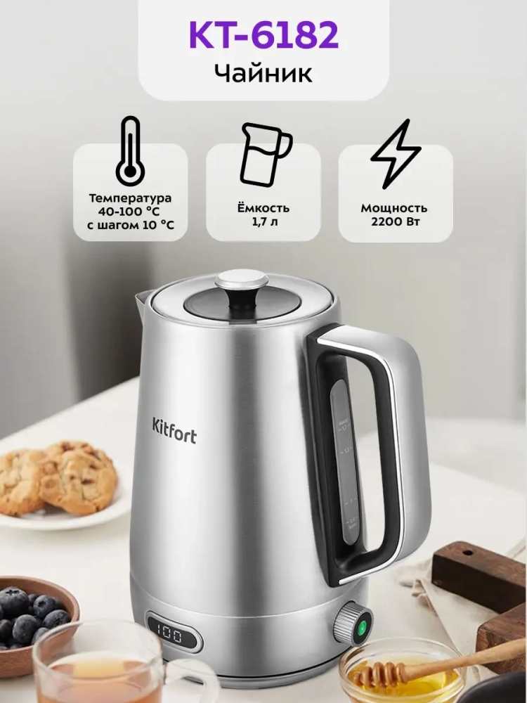 Электрический чайник с электронным терморегулятором Kitfort КТ-6182 может не только вскипятить воду, но и нагреть ее до температуры от 40 до 100 °С с шагом 10 °С, что очень удобно при заваривании различных сортов чая. Температура 40 °С удобна для приготовления детского питания. Чайник также оснащен функцией поддержания температуры. Температура воды контролируется встроенным в дно чайника термодатчиком.