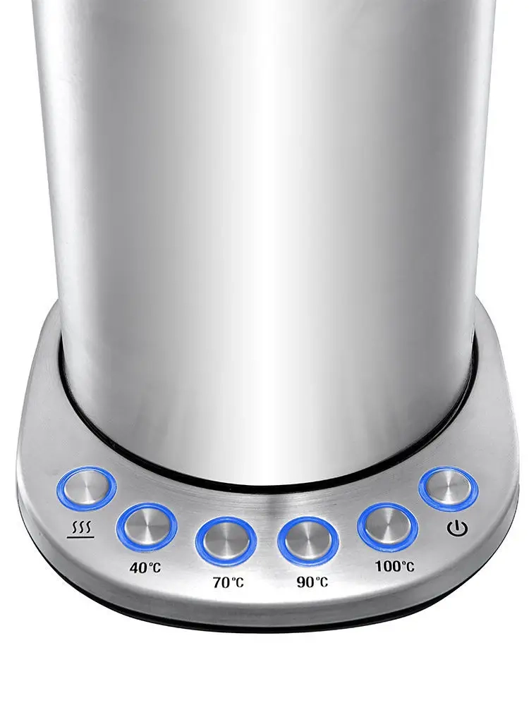 Электрический чайник с терморегулятором Kitfort КТ-621 может не только вскипятить воду, но и нагреть ее до температуры 40, 70 и 90 °С, что очень удобно при заваривании различных сортов чая. Температура 40 *С пригодится для приготовления детского питания. Чайник также оснащен функцией поддержания температуры. Температура воды контролируется встроенным в дно чайника термодатчиком.