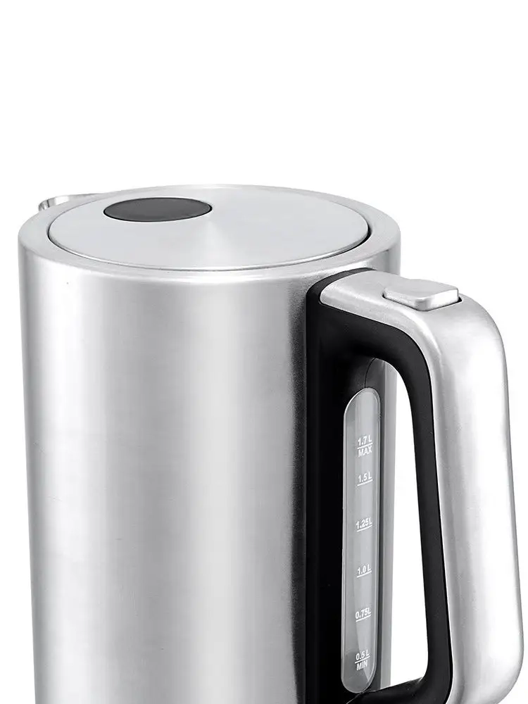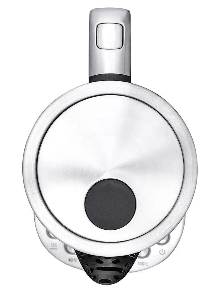 Корпус чайника выполнен из нержавеющей стали, а подставка — из сочетания пластмассы и нержавеющей стали. Большое горлышко чайника облегчает доступ внутрь при его мойке и во время удаления накипи. Ручка чайника пластиковая, не нагревается и удобно лежит в руке. Кнопка открывания крышки расположена сверху на ручке.