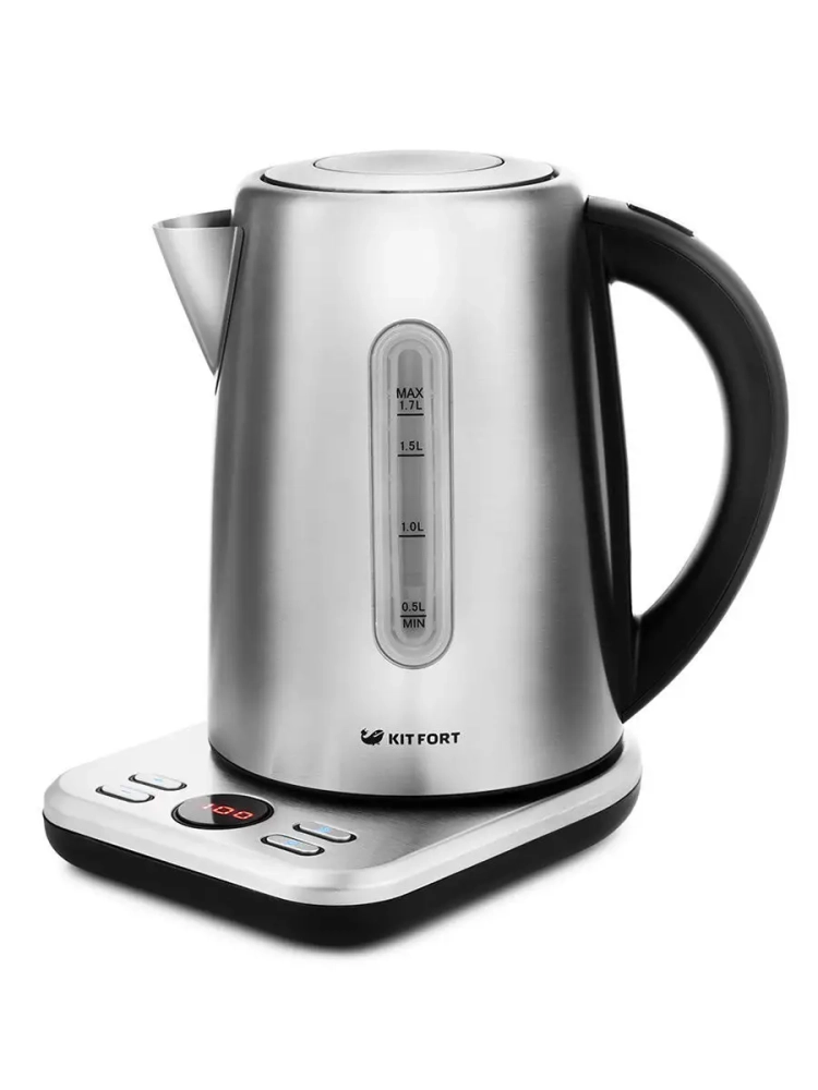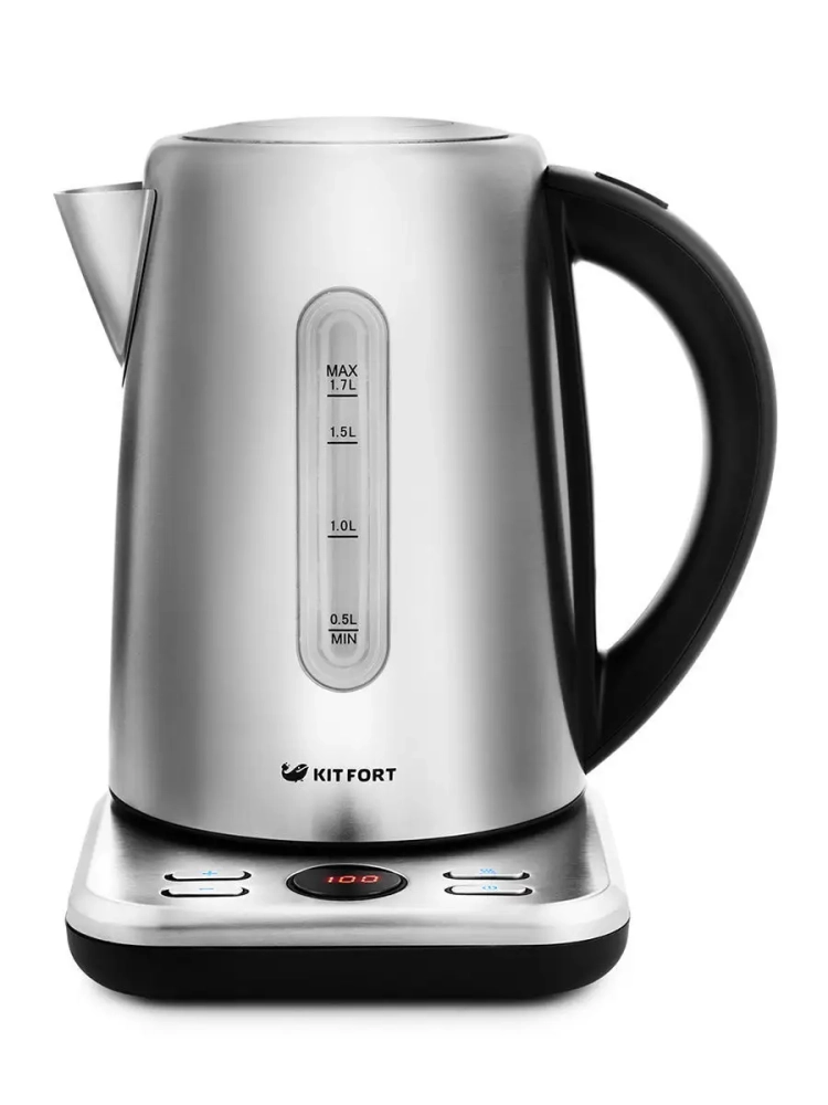 Электрический чайник с электронным терморегулятором Kitfort КТ-661 может не только вскипятить воду, но и нагреть ее до температуры 60, 70, 80 и 90 °С, что очень удобно при заваривании различных сортов чая. Чайник также оснащен функцией поддержания температуры. Температура воды контролируется встроенным в дно чайника термодатчиком.