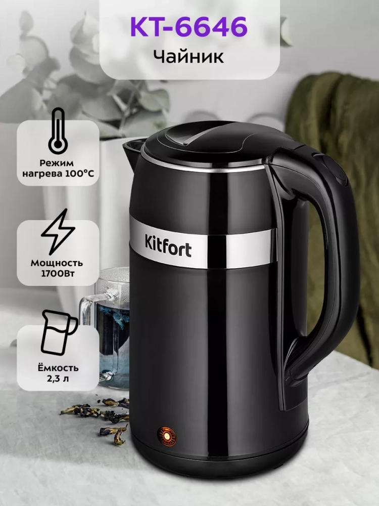 Электрический чайник Kitfort КТ-6646 предназначен для кипячения воды дома, в офисе, на даче.