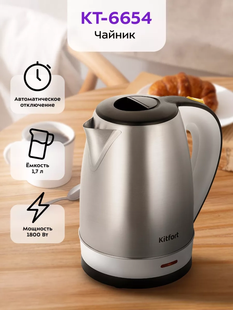 Электрический чайник Kitfort КТ-6654 предназначен для кипячения воды дома, в офисе, на даче.