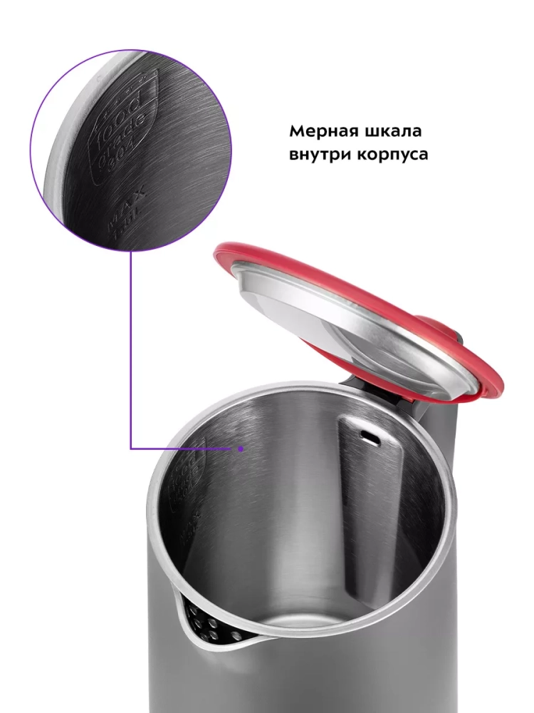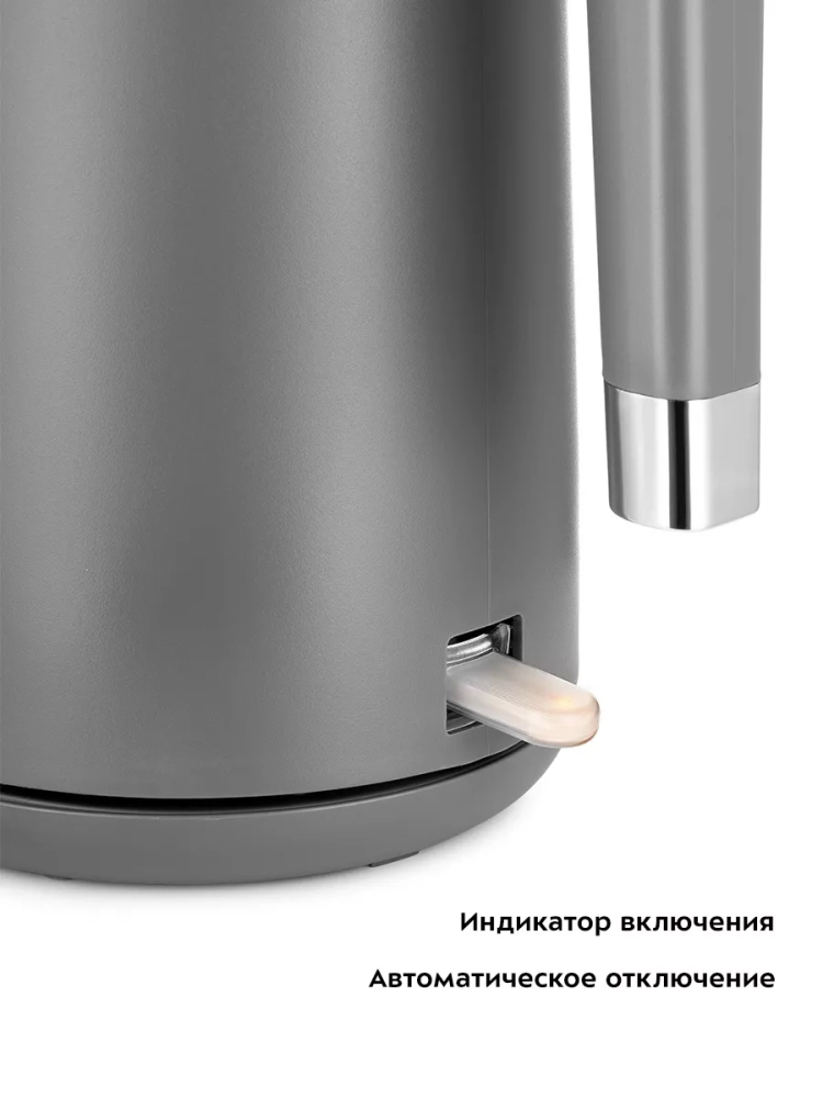 Чайник автоматически отключается при закипании, имеет защиту от перегрева и от включения без воды.