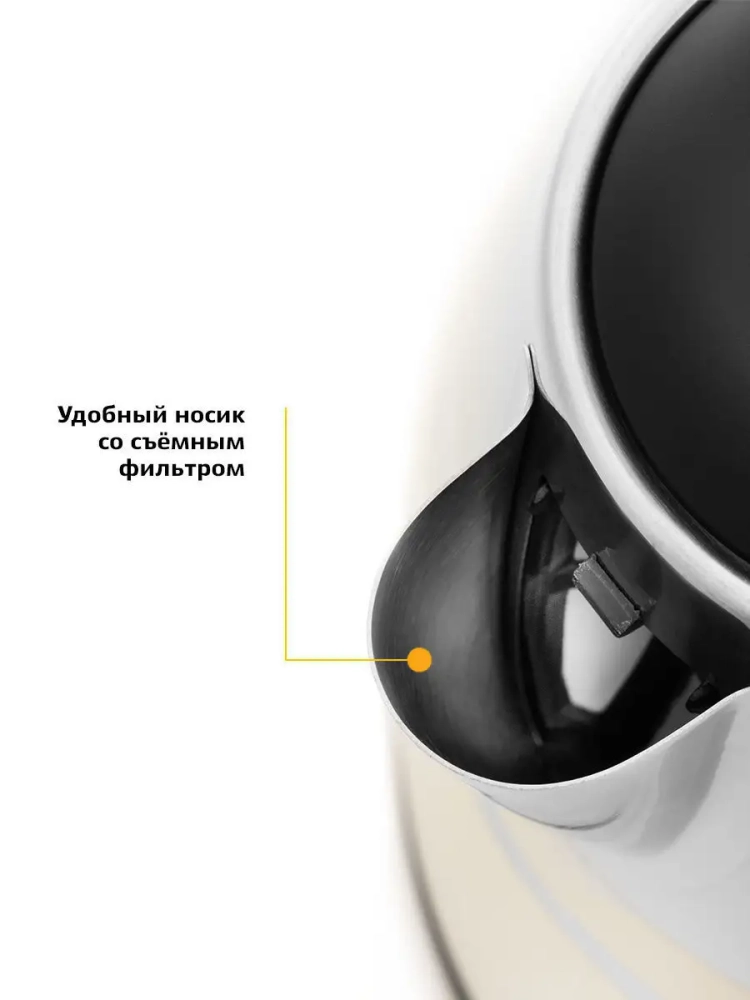 Подставка с центральным контактом дает возможность располагать на ней чайник в любом положении, обеспечивая вращение на 360°.
