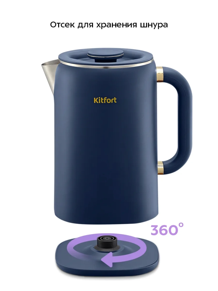 Подставка с центральным контактом дает возможность располагать на ней чайник в любом положении, обеспечивая вращение на 360°. Чайник автоматически отключается при закипании, имеет защиту от перегрева и от включения без воды.
