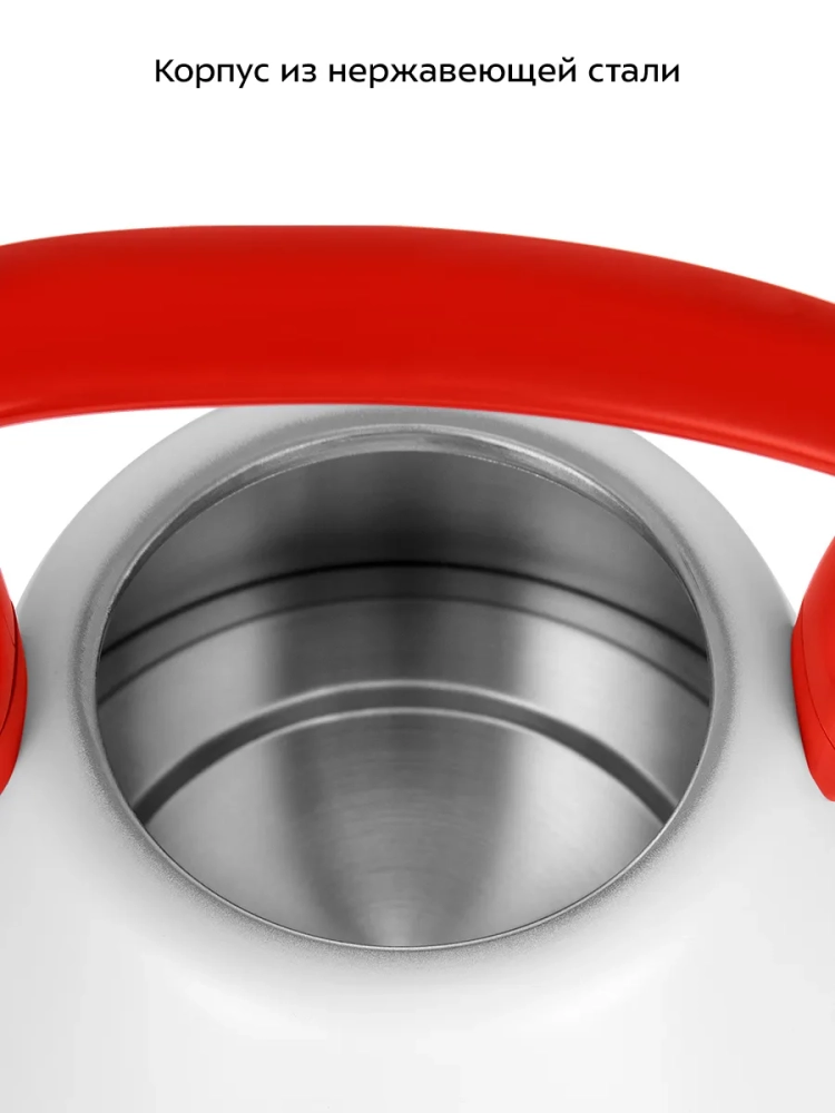Корпус чайника выполнен из нержавеющей стали. Крышка чайника съемная, сделана из нержавеющей стали. На внутреннюю поверхность чайника нанесена отметка «MAX». Ручка чайника пластиковая, не нагревается и удобно лежит в руке. Переключатель находится на корпусе снизу. При включении чайника загорается подсветка переключателя, которая является индикатором работы. Полный чайник закипает примерно за 5 минут.