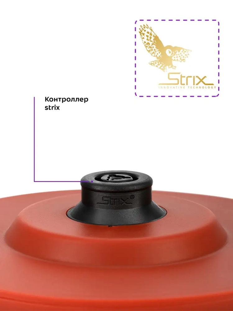 Нагревательный элемент (ТЭН) у этой модели чайника скрытый и находится в донной части. Сверху он закрыт специальной металлической пластиной из нержавеющей стали, благодаря которой исключается прямой контакт ТЭНа с водой. Такая конструкция препятствует образованию накипи, облегчает уход и значительно снижает шум при нагревании воды.