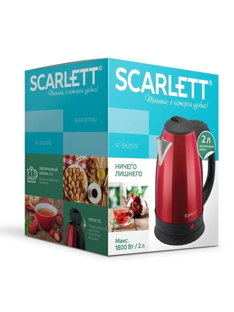 Электрический чайник SC-EK21S76 с увеличенным объемом 2 л оснащён традиционной системой открытия крышки. Эргономичная ручка, закрытый нагревательный элемент сделают эксплуатацию прибора еще проще и комфортнее. Safe Work -автоотключение при закипании, защита от включения без воды сделают эксплуатацию прибора наиболее безопасной. Стильный красный цвет станет удачным решением на кухне!
