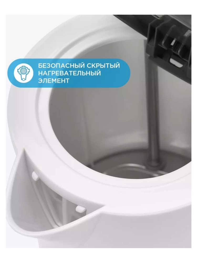 Безопасность использования обеспечивается благодаря ряду автоматических функций: блокировка включения без воды и отключение при снятии с подставки. Это предотвращает возможные несчастные случаи и обеспечивает удобство использования.