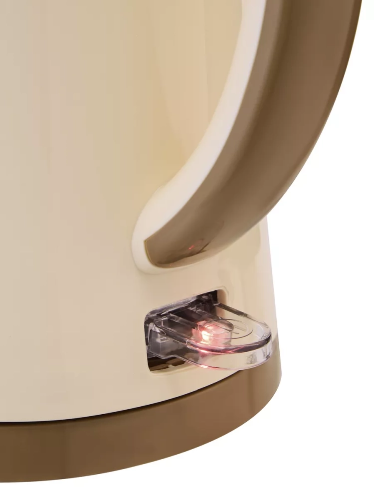 Чайник имеет стильный бежевый цвет и оснащен вращающейся на 360 градусов подставкой, что делает его удобным в использовании.