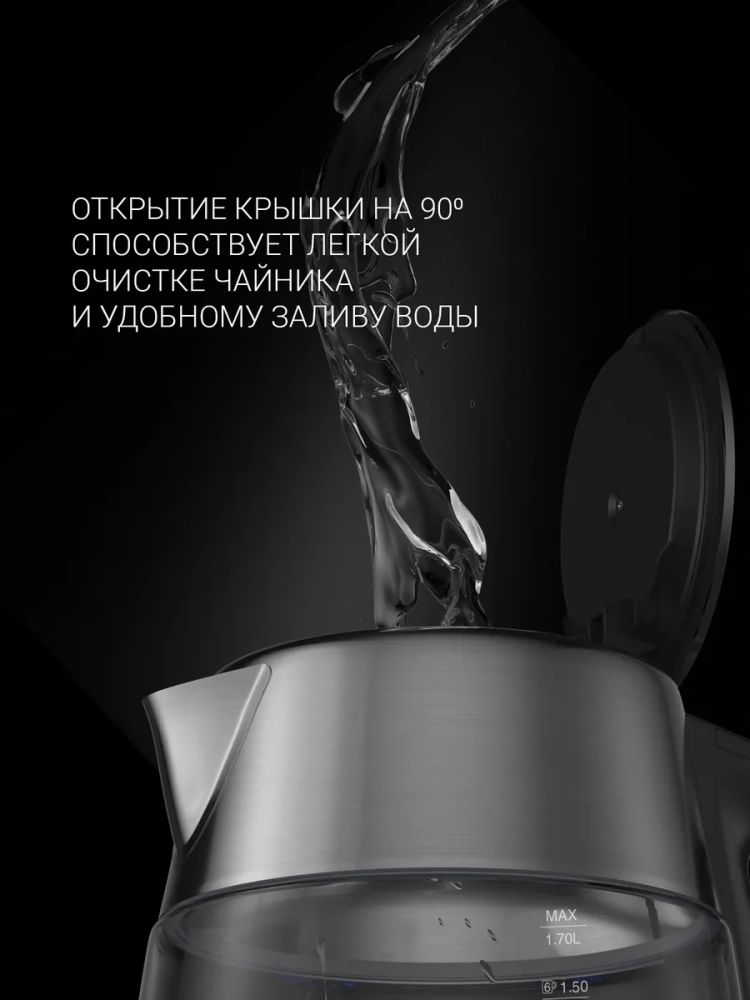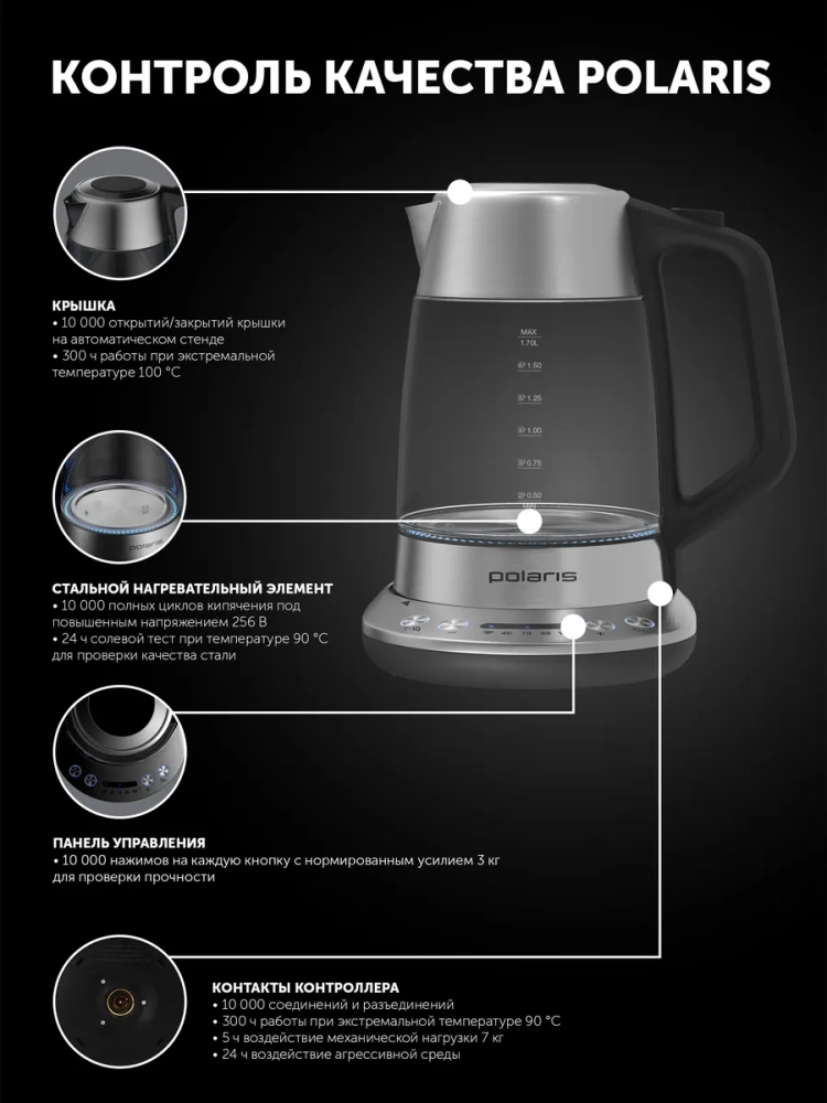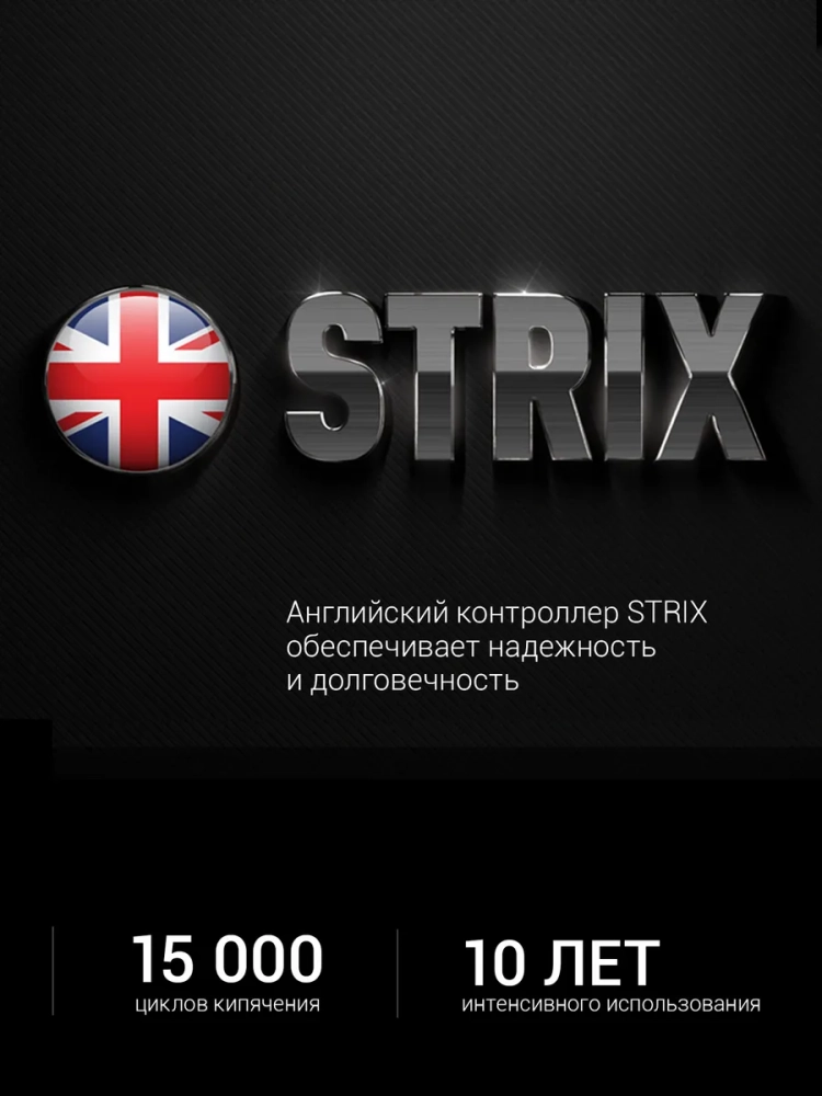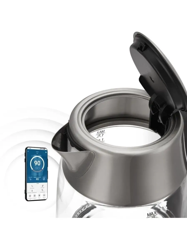Умный электрический чайник Polaris PWK 1775CGLD Wi–Fi IQ Home управляется со смартфона и отображает текущий уровень воды в приложении IQ Home. Оснащен системой автоотключения при отсутствии воды и режимом поддержания заданной температуры. Чайник электрический стеклянный имеет объем 1,7 литра и мерную шкалу для контроля уровня заполнения воды. Регулировать температуру от 40 до 100 °С можно как на панели управления электрочайника с ЖК-дисплеем на подставке, так и через удобное приложение IQ Home. Технология управления по Wi-Fi не требует дополнительного оборудования для подключения, нужен только смартфон и чайник. Чайник электрический с подсветкой управляется через голосовых помощников “Алиса, “Салют! Умный дом” и Маруся”. Прозрачный корпус чайника изготовлен из прочного термостойкого стекла. Крышка стеклянного чайника открывается под углом 90°, что обеспечивает удобный залив воды и комфортную очистку от накипи. За долговечность отвечает английский контроллер STRIX, который рассчитан на 15000 циклов кипячения, что эквивалентно 10 годам постоянного использования. Мощность чайника с подогревом составляет 1850–2200 Вт. Произведен под контролем швейцарских инженеров и имеет гарантию 3 года от производителя.