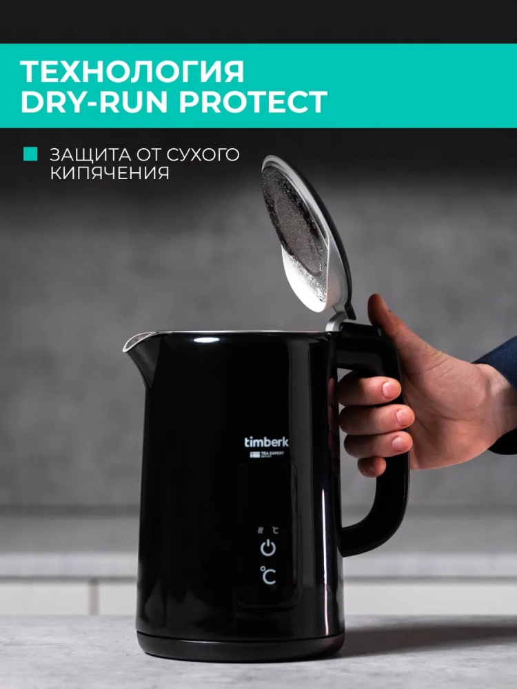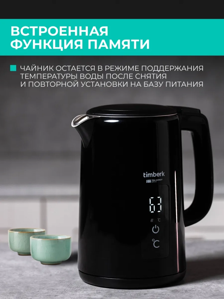 Чайник Timberk поддерживает температуру в течение 2 часов, чтобы Вы дольше наслаждались горячими напитками. Двойные стенки делают внешнюю поверхность чайника безопасной для прикосновения. Сенсорная панель управления с индикатором позволяет контролировать температуру воды. Чайник оснащён системой защиты от сухого кипячения, если в чайнике нет или мало воды, он автоматически отключится. В комплект прибора входят база питания с отсеком для хранения шнура, съемный нейлоновый фильтр для защиты от накипи.
