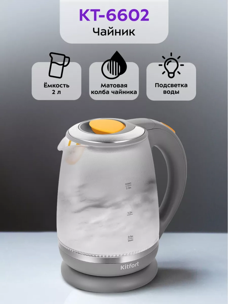 Чайник электрический с подсветкой КТ-6602 - 2 л