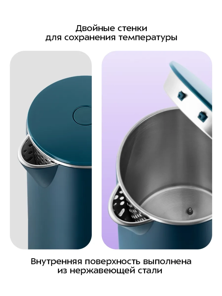 Электрический чайник с электронным терморегулятором Kitfort КТ-6784 может не только вскипятить воду, но и нагреть ее до температуры в диапазоне от 50 до 90 °С с шагом 10 °С, что очень удобно при заваривании различных сортов чая, а также при приготовлении детского питания. Чайник также оснащен функцией поддержания температуры в течение 30 минут. Температура воды контролируется встроенным в дно чайника термодатчиком.