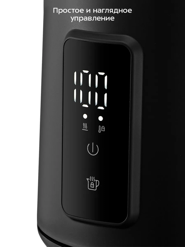 На дисплее отображается текущая температура воды в чайнике, а при установке температуры — температура нагрева воды. Температура воды на дисплее отображается постоянно, что очень удобно.