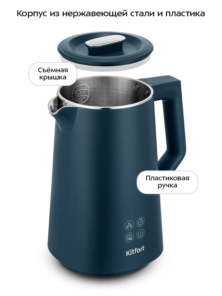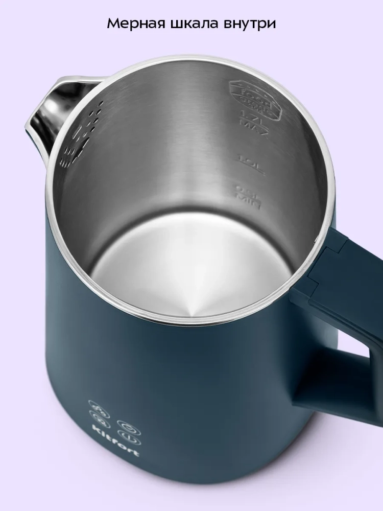 Электрический чайник-увлажнитель Kitfort КТ-8728 — это прибор, совмещающий в себе функции двух устройств: чайника и увлажнителя воздуха. Чайник-увлажнитель поможет не только вскипятить воду дома, в офисе или на даче, но и создаст комфортный уровень влажности в помещениях, площадь которых не превышает 15 м2. Устройство увлажняет воздух паром, который образуется при кипячении воды.