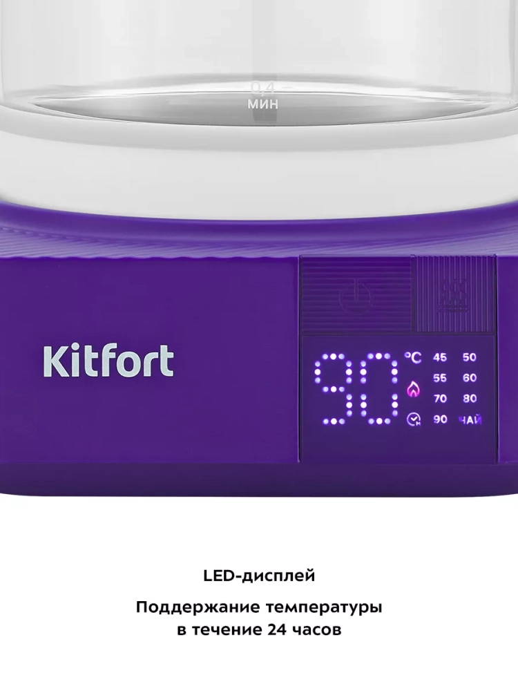 Электрический чайник с электронным терморегулятором Kitfort КТ-6191 может не только вскипятить воду, но и нагреть ее до температур: 45, 50, 55, 60, 70, 80 и 90 °С, что очень удобно при заваривании различных сортов чая. Чайник также оснащен функцией поддержания температуры и дехлорирования. Температура воды контролируется встроенным в дно чайника термодатчиком.