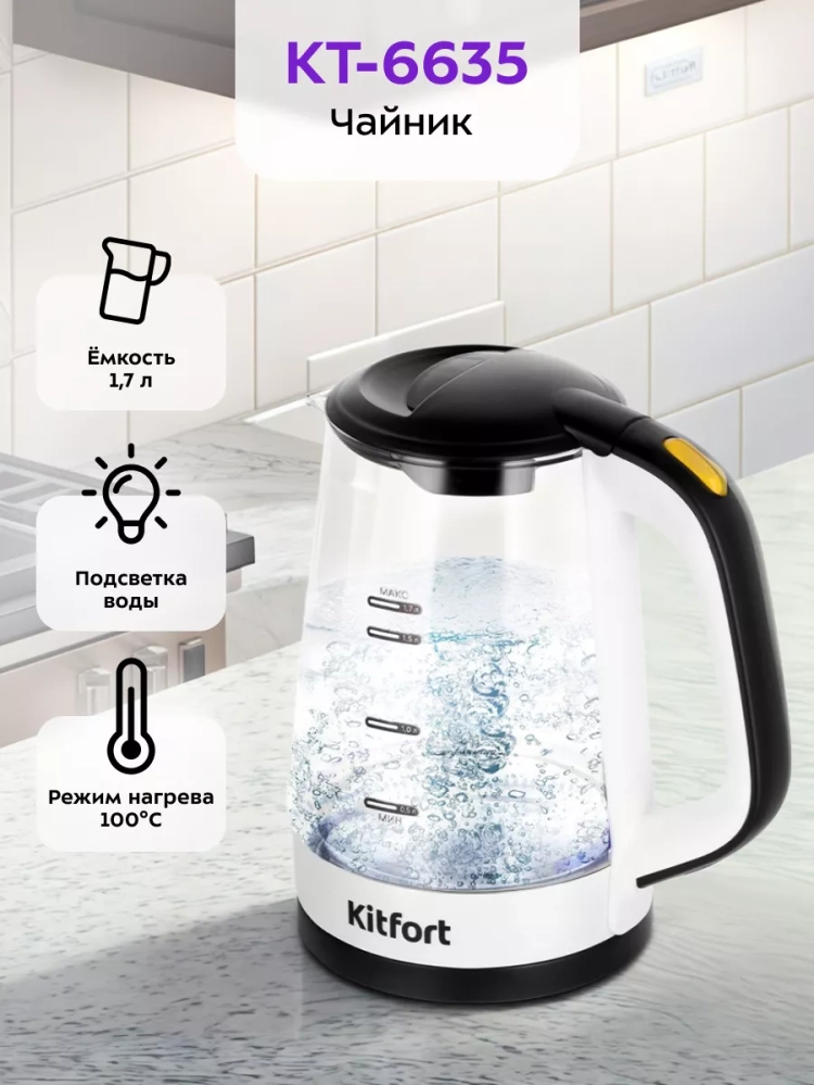 Электрический чайник Kitfort КТ-6635 предназначен для кипячения воды дома, в офисе, на даче.