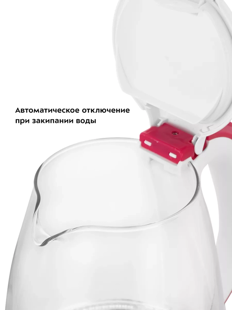 Чайник автоматически отключается при закипании, имеет защиту от перегрева и от включения без воды. В носике чайника расположен съемный фильтр от накипи.