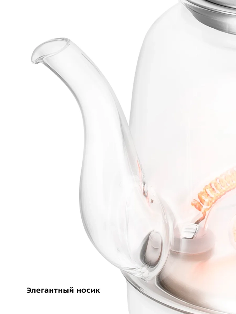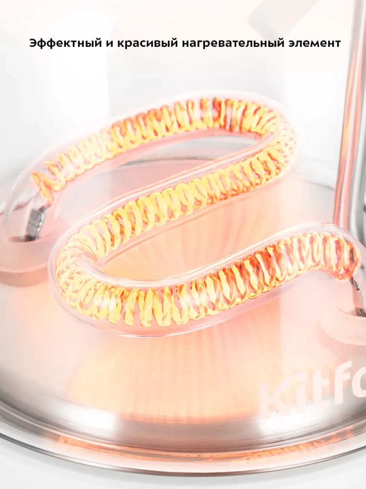 Инфракрасный нагревательный элемент у этой модели чайника находится в нижней части корпуса. Во время работы чайника нагреватель светится, что выглядит очень необычно и эффектно.