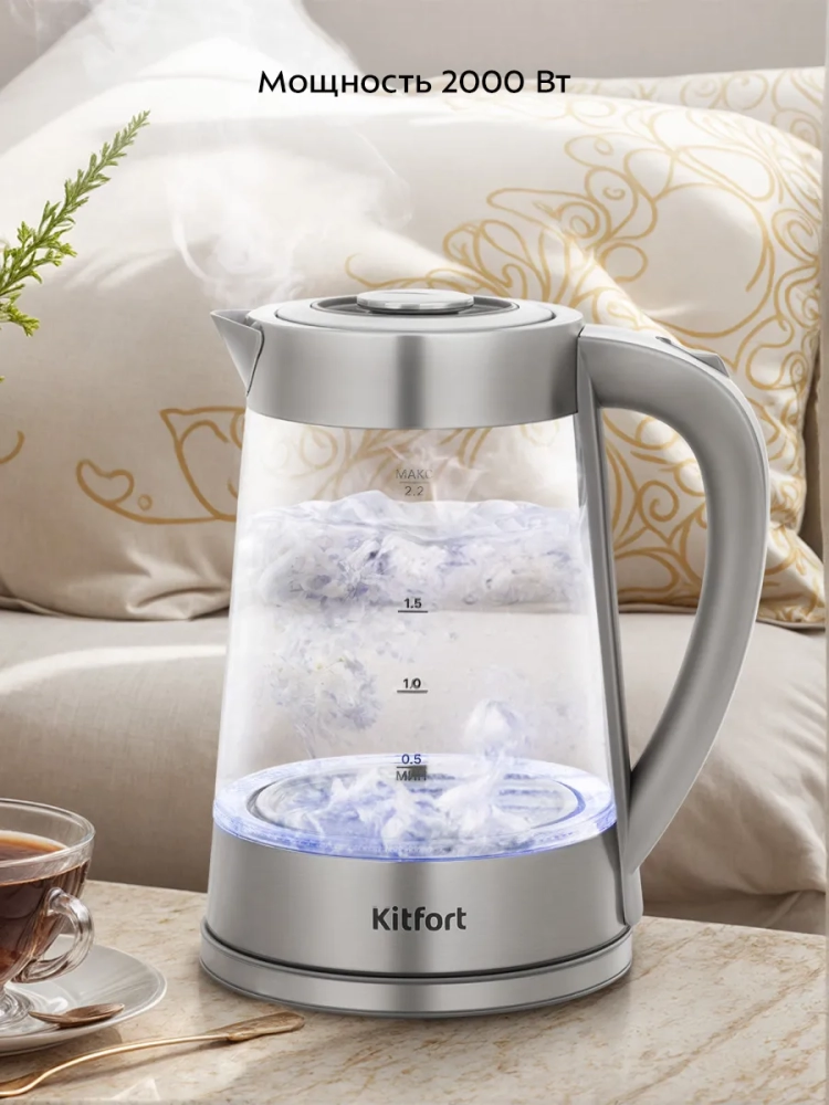 Чайник электрический стеклянный КТ-6763 - 2,2 л