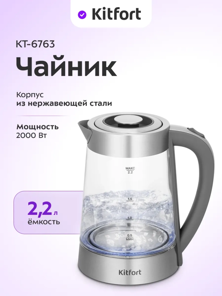 Электрический чайник Kitfort КТ-6763 предназначен для кипячения воды дома, в офисе, на даче.