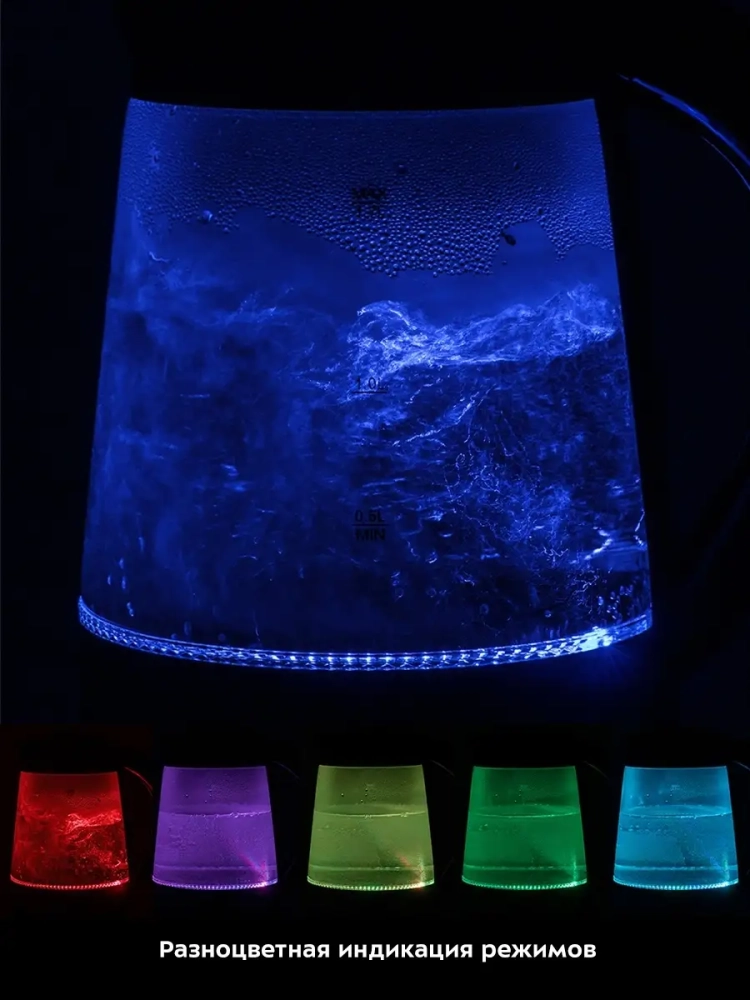 Подставка с центральным контактом дает возможность располагать на ней чайник в любом положении, обеспечивая вращение на 360 °. Снизу имеется отсек для хранения шнура, в который можно смотать излишки шнура электропитания, чтобы он не мешал на столе. Под определенную температуру чайника, индикация будет меняться от синего цвета до красного. После закипания, изменения и окончания программ, а также при установке на подставку раздается звуковой сигнал.