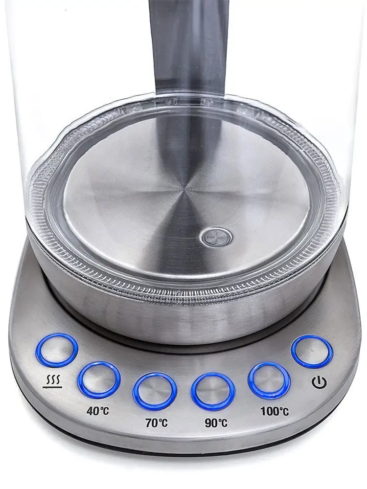 Электрический чайник с терморегулятором Kitfort КТ-616 может не только вскипятить воду, но и нагреть ее до температуры 40, 70 и 90 °С, что очень удобно при заваривании различных сортов чая. Температура 40 *С пригодится для приготовления детского питания. Чайник также оснащен функцией поддержания температуры. Температура воды контролируется встроенным в дно чайника термодатчиком.