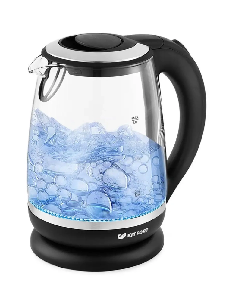 Чайник электрический стеклянный с подсветкой КТ-655 - 2 л
