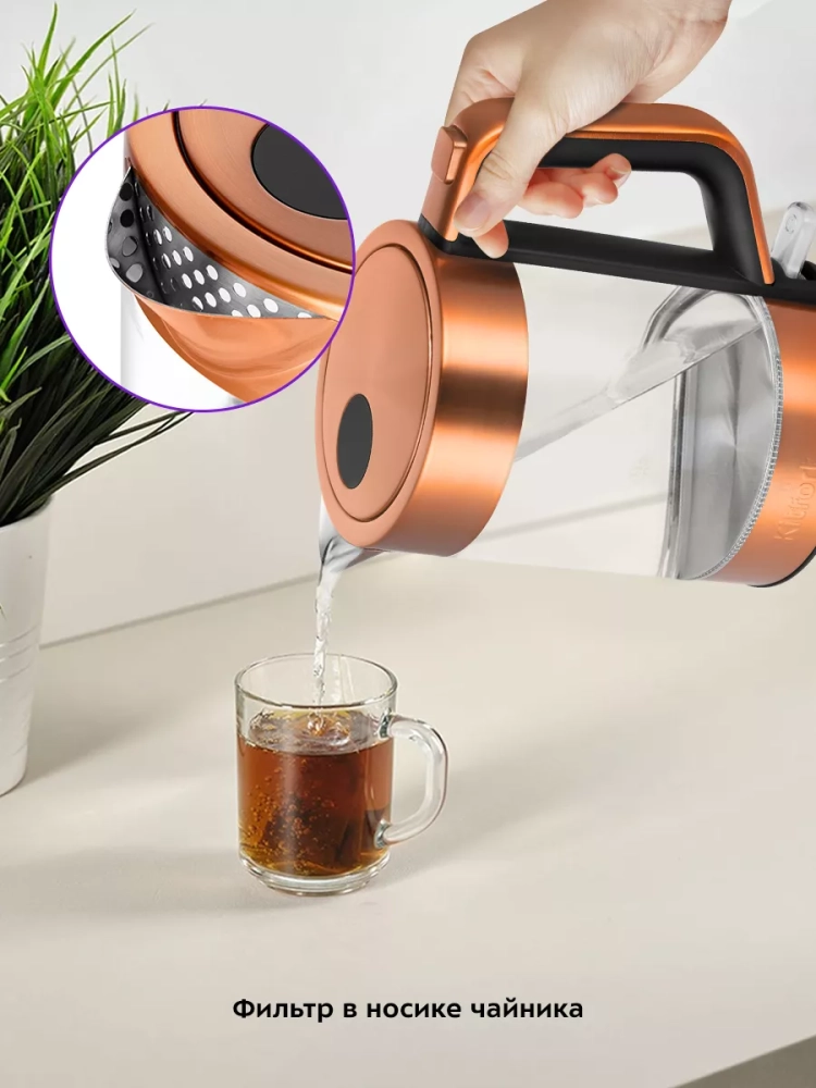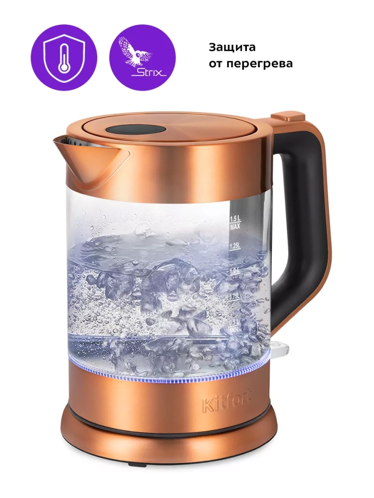 Электрический чайник Kitfort КТ-6656 предназначен для кипячения воды дома, в офисах и на дачах. Мощность чайника позволяет использовать его в домах со слабой проводкой. В носик чайника встроен фильтр.