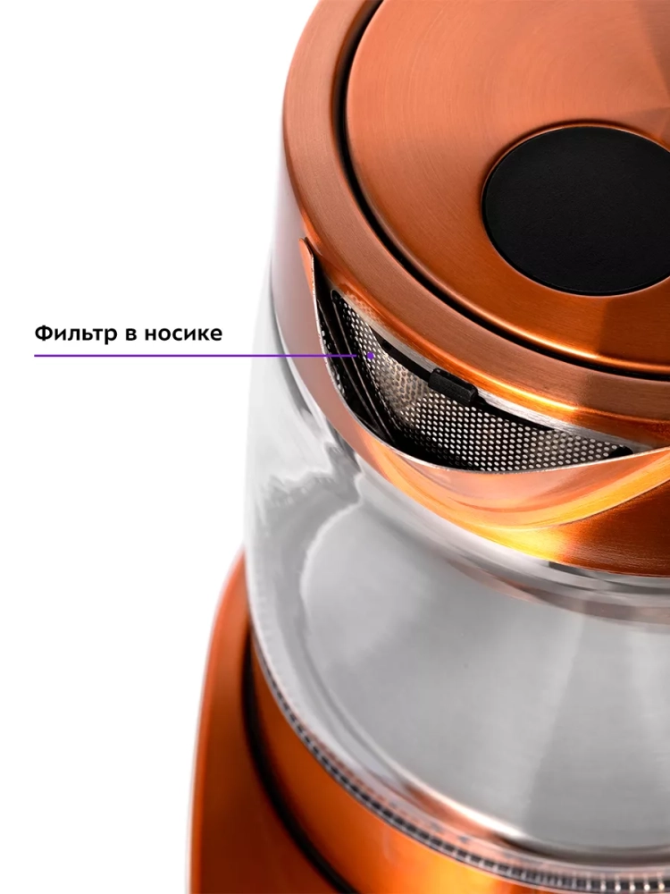 Чайник автоматически отключается при закипании и при снятии его с подставки, имеет защиту от перегрева и защиту от включения без воды.
