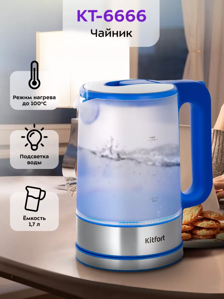 Электрический чайник Kitfort КТ-6666 предназначен для кипячения воды дома, в офисе, на даче.