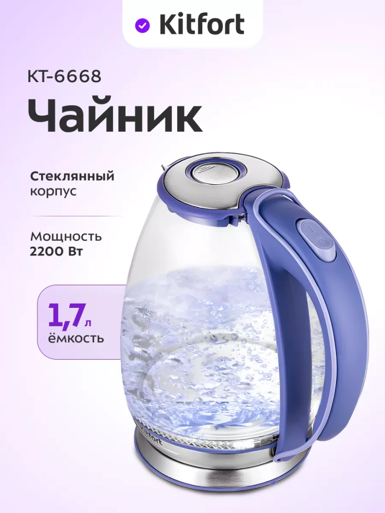 Электрический чайник Kitfort КТ-6668 предназначен для кипячения воды дома, в офисе, на даче.