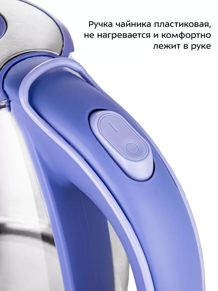 Чайник автоматически отключается при закипании и при снятии с подставки, имеет защиту от перегрева и от включения без воды.