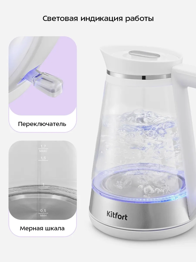 Электрический чайник Kitfort КТ-6671 предназначен для кипячения воды дома, в офисе, на даче.