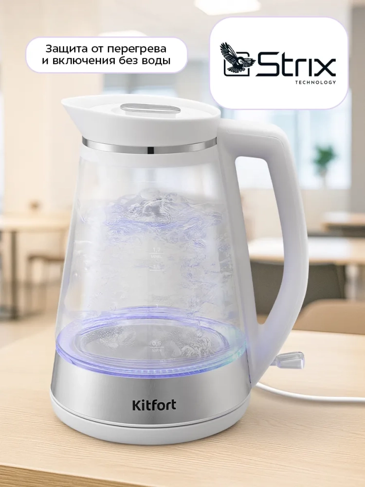 Чайник оснащен контроллером Strix, который отличается своей долговечностью, а также обеспечивает максимальную безопасность при использовании чайника.